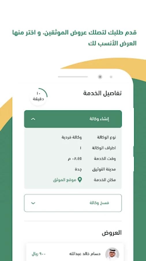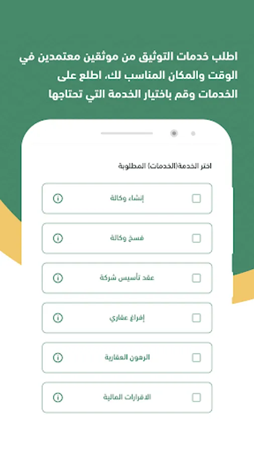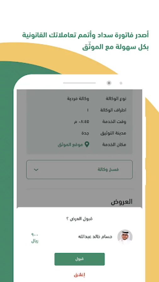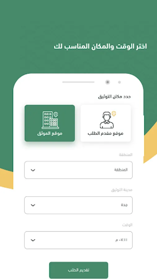 The notary application allows individuals and commercial establishments to perform many notary services without the need to visit them, by searching for notaries accredited by the Ministry of Justice and requesting their attendance to complete your business at any time and anywhere.