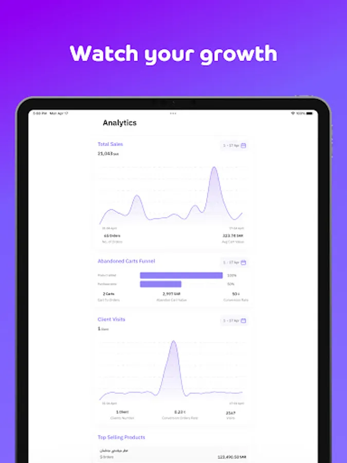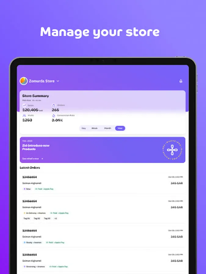 Build and manage Your Modern Retail business on-the-go with Zid app. From anywhere; you can always stay on top of your store’s performance and operations.
