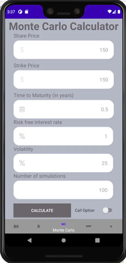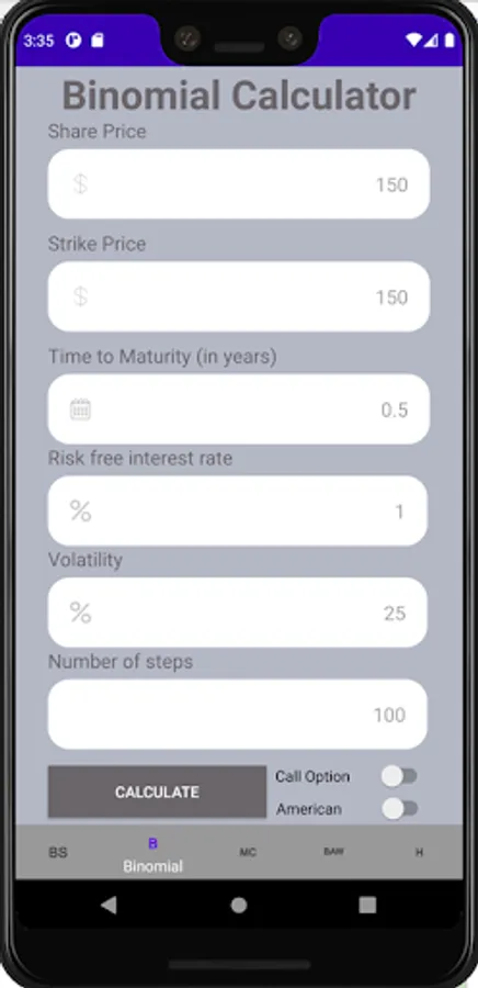Option Pricing Calculator Screenshots