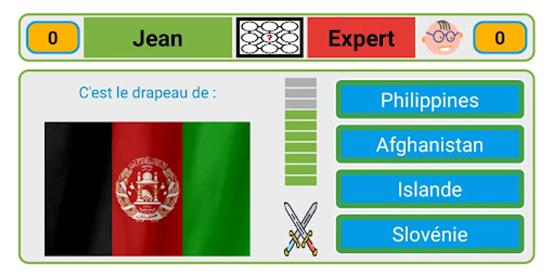 "Flags Quiz" is a trivia game that teaches the flags of all countries in the world in the most fun way possible. It is extremely easy to use.