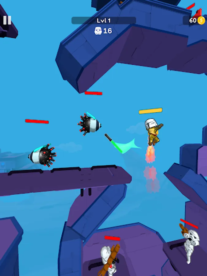 Use your light saber like a pro! Throw your sword, cut your enemies and then teleport to your sword position. Learn new abilities to get stronger, froze your enemies, explode them, turn your sword into a killing machine!