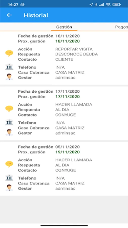 The SAC Mobile module is aimed at facilitating and optimizing the collection management process in the field, allowing detailed registration of transactions from an online mobile device under permanent control and monitoring through the visit reporting tools of the SAC system.