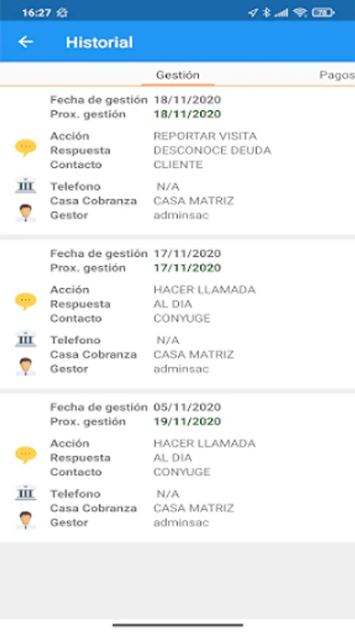 The SAC Mobile module is aimed at facilitating and optimizing the collection management process in the field, allowing the detailed recording of transactions from a mobile device online under permanent control and monitoring through the SAC system's visit reporting tools.