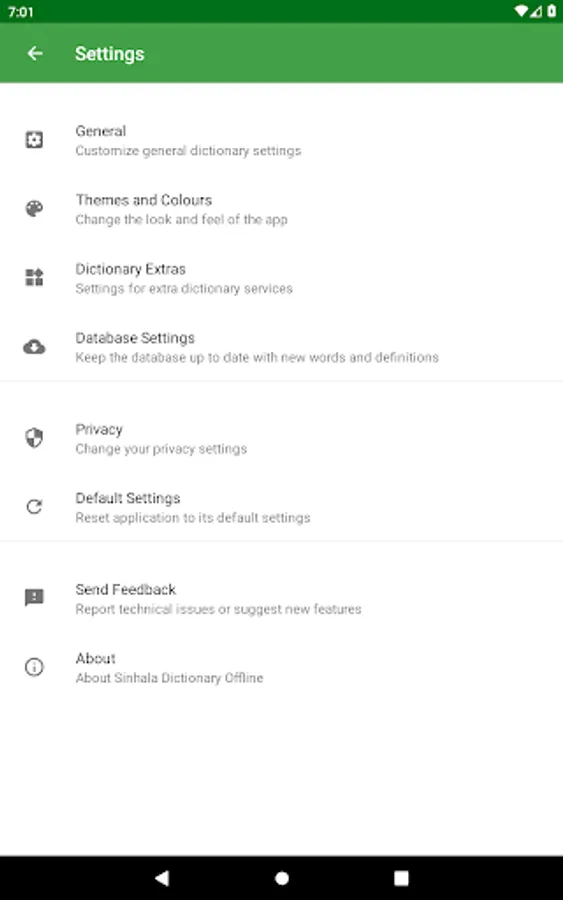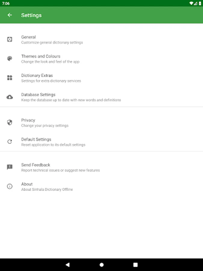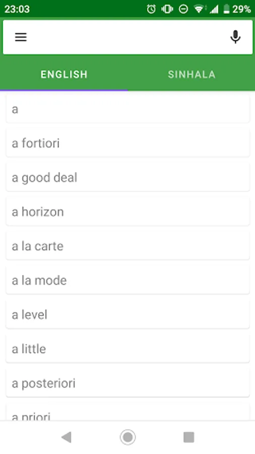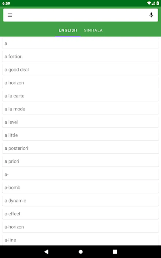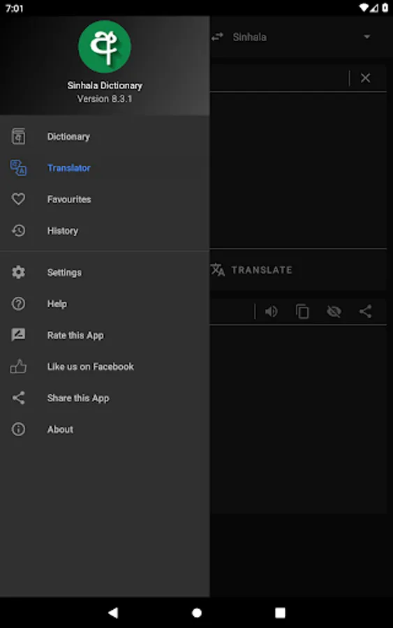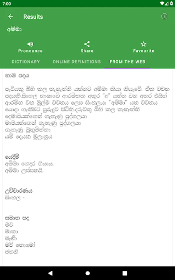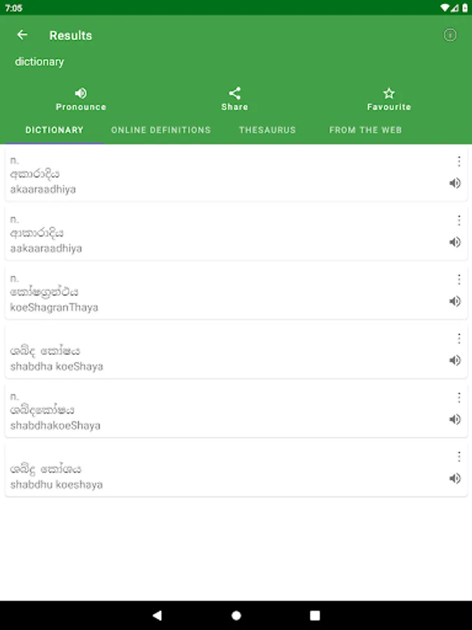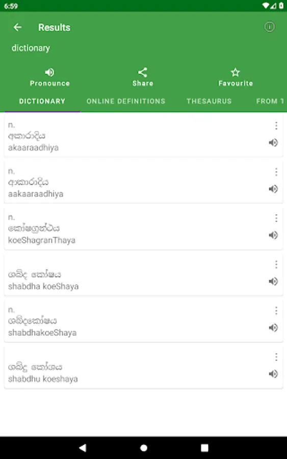 (Sinhala Dictionary uses default Android Text-to-Speech Engine, You can download alternatives from Google Play - IVONA , eSpeak, SVox etc)