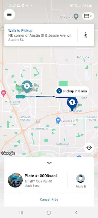 Current service areas offer curb-to-curb service where passengers are picked up and dropped off at the address they indicated when scheduling. New service areas offer corner-to-corner service where passengers are picked up and dropped off at the nearest corner or ‘virtual bus stop,’ which is usually within a block or two of their pickup or drop-off location. In the Downtown zone only, stops are at designated SacRT bus stops.