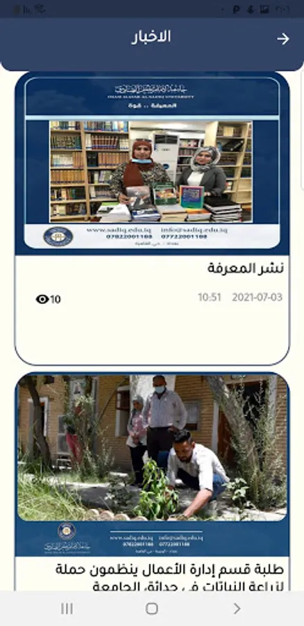هذا التطبيق متاح للناس عامةً ولطلاب جامعة الامام جعفر الصادق (ع) خاصةً. يعرض التطبيق اخبار واعلانات الجامعة اليومية بالاضافة الى الكتب المتوفرة في المكتبة المركزية التابعة للجامعة مع مواقعها داخل المكتبة لتسهيل استعارة الكتب من قبل الطلاب. يحتوي التطبيق ايضا على تعريف عن فروع الجامعة (بغداد والمحافظات) بالاضافة الى الموقع الجغرافي لهذه الافرع. يسهل التطبيق امكانية الحصول على معلومات عن الكليات والاقسام الموجودة ضمن الجامعة فيما يخص اقساطها السنوية والمقررات الدراسية لكل مرحلة. كما يحتوي التطبيق على مساحة مخصصة لكل طالب من طلاب الجامعة لتمكينه من الاطلاع والتأكد من الاقساط التي تم دفعها من قبله بالاضافة الى تذكيره بالمبلغ المتبقي عليه.