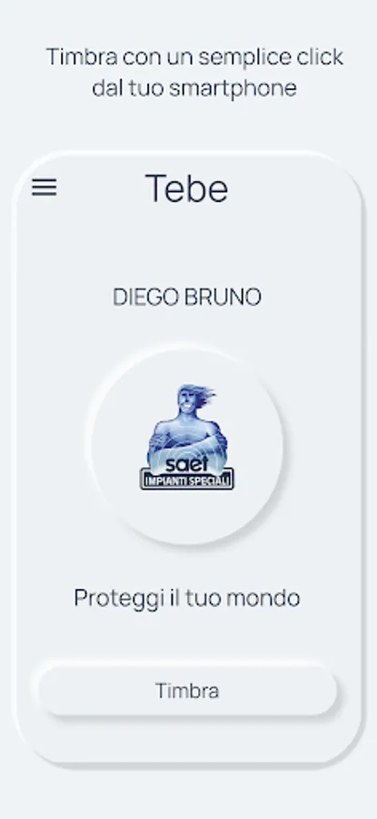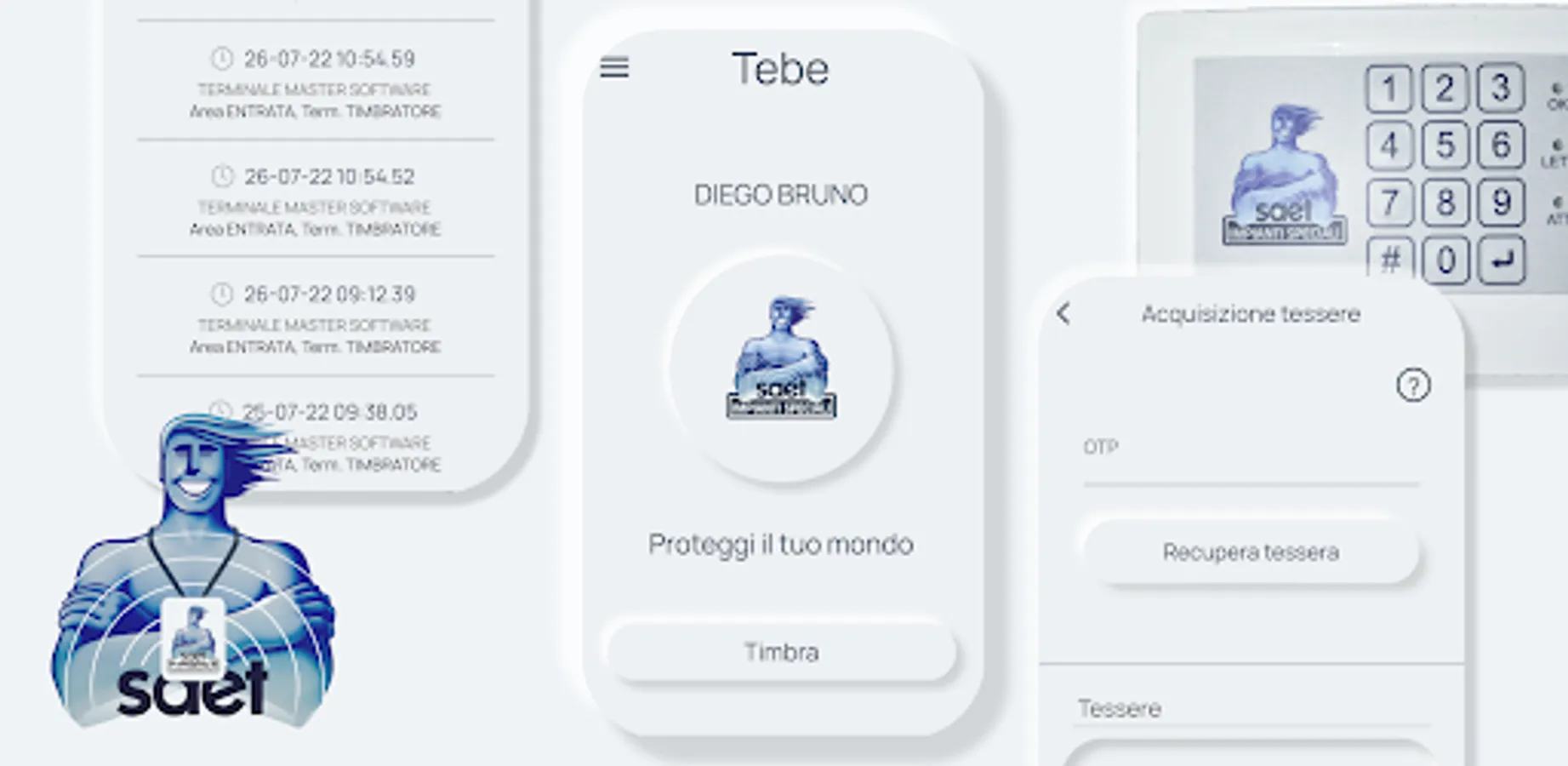 The TEBE SAET APP performs secure authentication with the CLOUD SAET server from which it receives the card code; the system manages permanent cards and cards with expiry date (visitors / occasional users), solving all the revocation functions at the end of the visit.