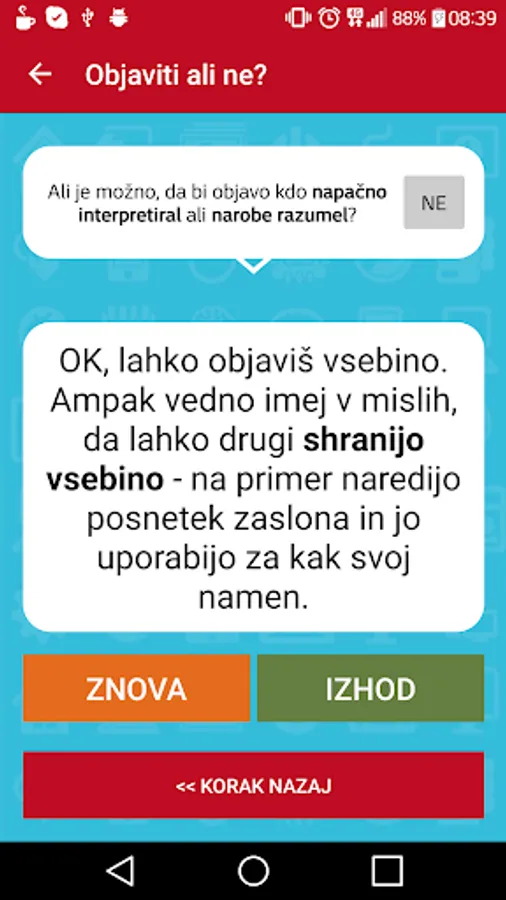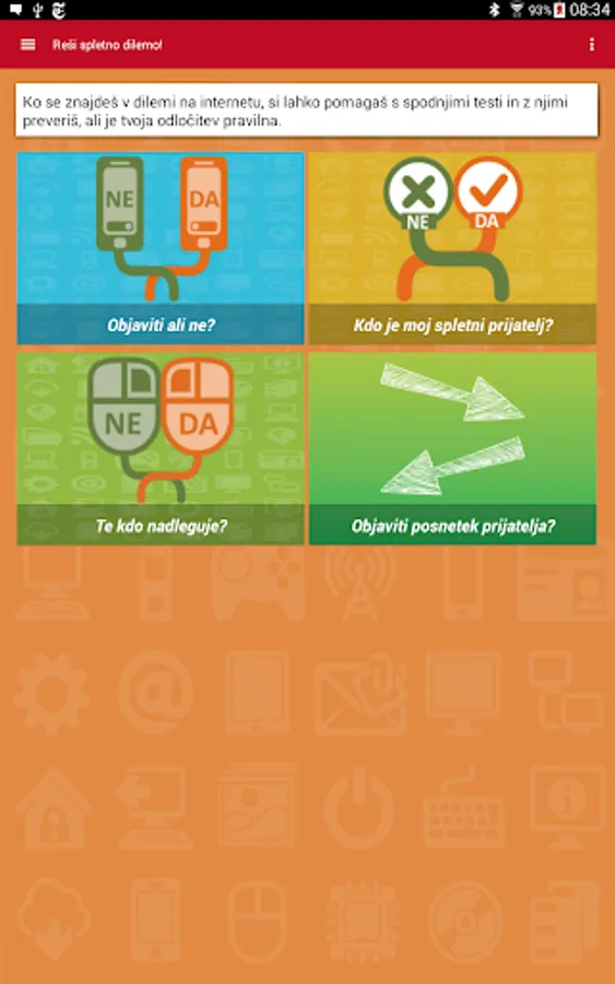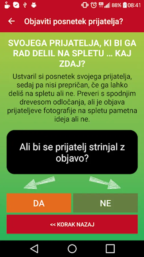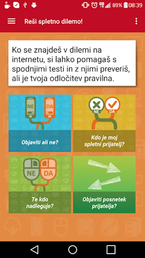 When you find yourself in the dilemmas on the internet when someone is bothering you on Facebook when you're not sure about that, or the publication of funny photos of your friends a good idea, you can help with this application. The app contains four tests made on the principle of the decision tree, which this through some simple questions to guide the way to the right decision and at the same time offering solutions to the wrong decisions.