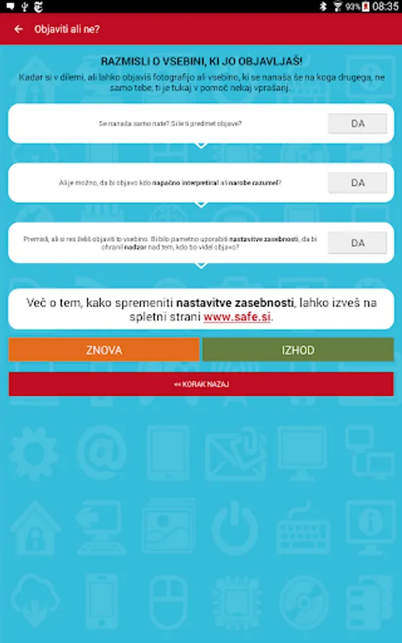 Applications created under point for raising awareness of safer use of the Internet Safe.si (www.safe.si), which is a European project of education of children, youth, parents and teachers about the safe and responsible use of the Internet.
