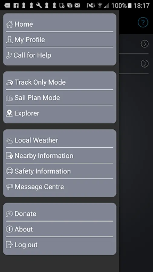 Registering vessel and trip information could not be any easier. Follow the registration process to start using the app. Finalise the registration in the website with the same login codes. Once your registration details have been saved, you can make your choice from the menu in the app. You may either plan and file your trip (Sail plan mode) or just activate the tracking function of the app (Track only mode).