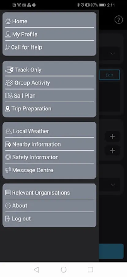 Follow the registration process to start using the app. You may either plan and file your trip (Sail Plan mode) or just activate the tracking function when starting your trip (Track only mode).