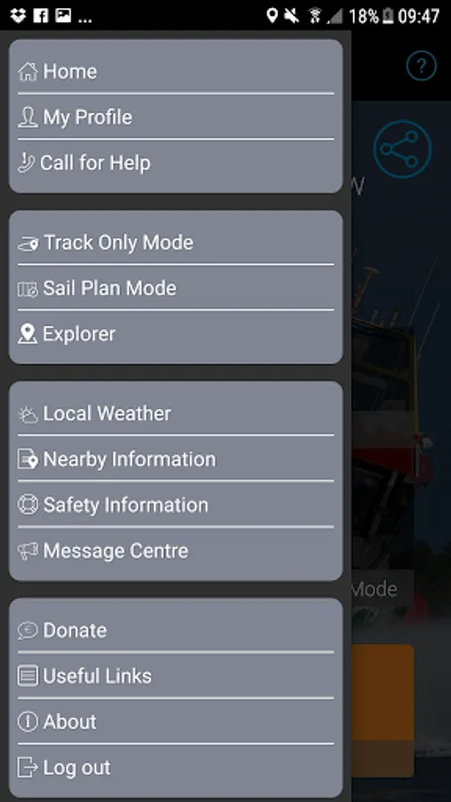 Follow the registration process to start using the app. Once your registration details have been saved, you can make your choice from the menu in the app. You may either plan and file your trip (Sail plan mode) or just activate the tracking function of the app (Track only mode).