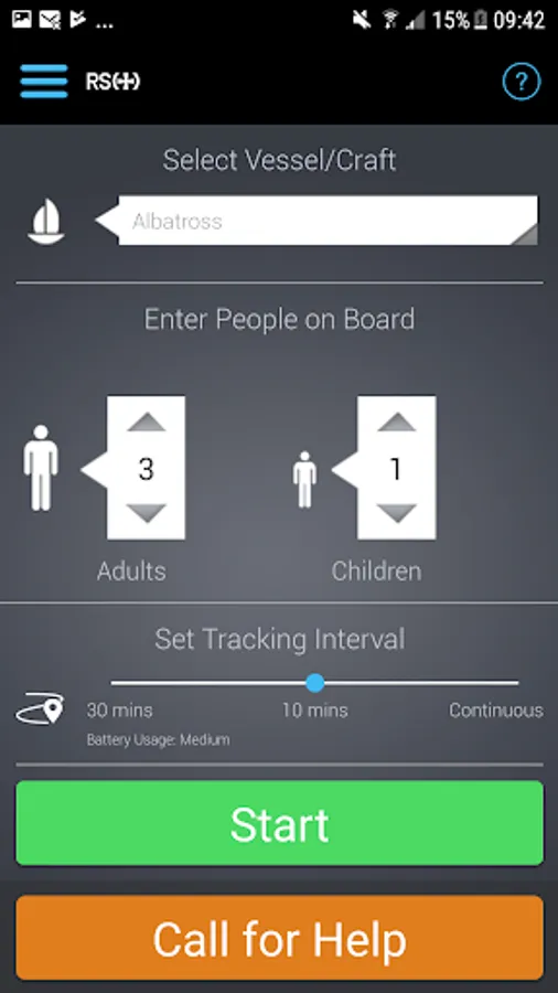 Pressing ‘start’ in Sail plan mode or just pressing the start button in Track only mode will register the journey details with the RS server and will activate position reporting in the app. At regular intervals the app will send a position report to the server and your emergency contacts will be automatically alerted after the journey exceeds the ETA in Sail Plan mode.