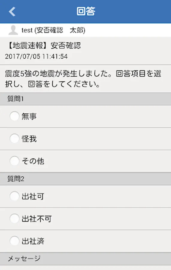 You can register answers such as safety status to the received emergency contact / safety confirmation notification.