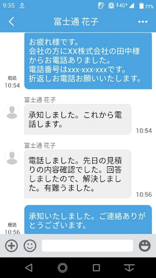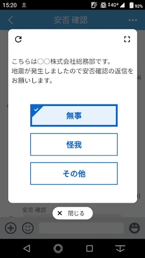 This application can be used as a communication tool between users by using the business chat and voice call functions provided within the application during normal times, and in the event of an emergency (mainly a natural disaster such as a large-scale earthquake), employees and staff It is a service that allows you to confirm your safety.