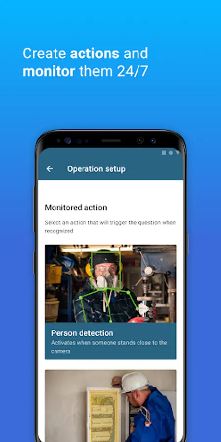 Safety Trigger turns a smartphone into a smart video surveillance and safety control system that will trace access to guarded area and warn staff about possible risks and limitations using voice comands. Artificial Intelligence and Computer Vision technologies make it possible to determine the intentions of a person and prevent accidents. With Safety Trigger there are no accidents at the enterprise, no unauthorized access to hazardous areas, no theft or property damage. Safety Trigger helps ensure high safety standarts, safety of property and staff safety.