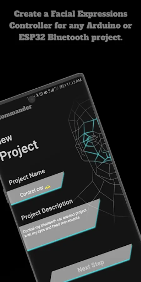 1- Get the Face Commander Arduino and ESP32 Bluetooth Controller for your Android phone and install it.