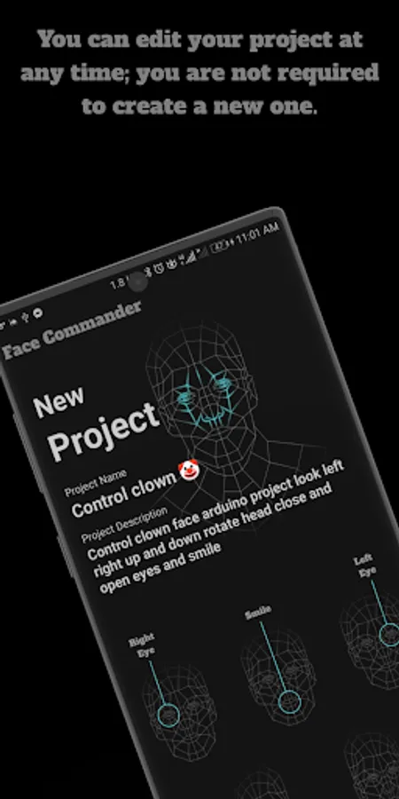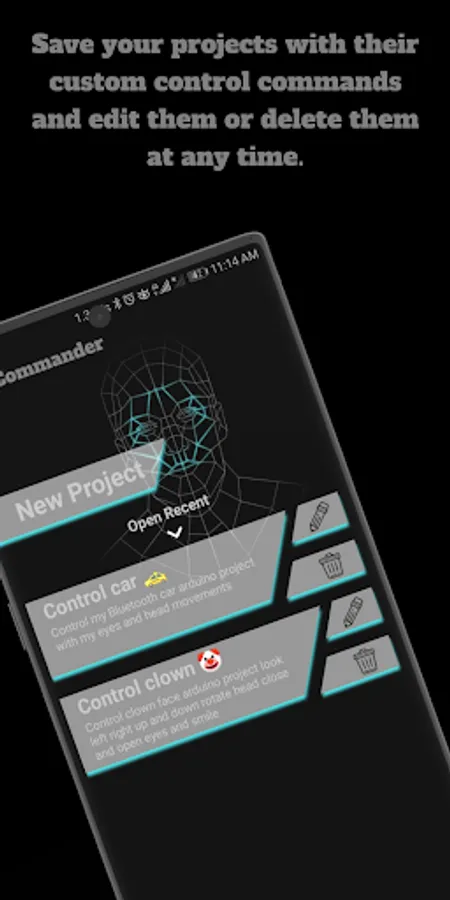 Face Commander Arduino and ESP32 Bluetooth Controller allow you to save an unlimited number of projects and edit or delete them at any time.