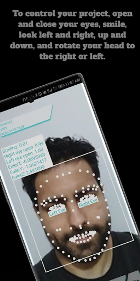 You can send commands to your Arduino or ESP32 Bluetooth Project. To control your project, open and close your eyes, smile, look left and right, up and down, and rotate your head to the right or left.