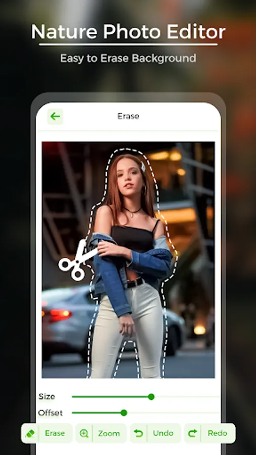 Select photo from gallery album with auto and manually erase background from photos to add nature photo backgrounds.