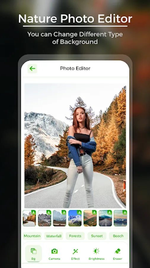 Nature Photo Editor BG Changer application helps to change photo background to set on nature photos.