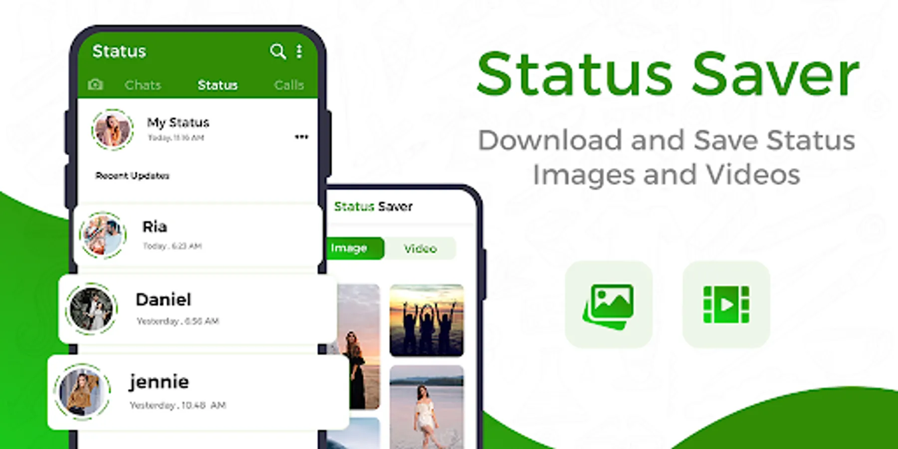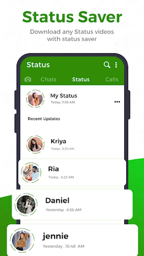 - Save photo & video statuses in phone gallery.