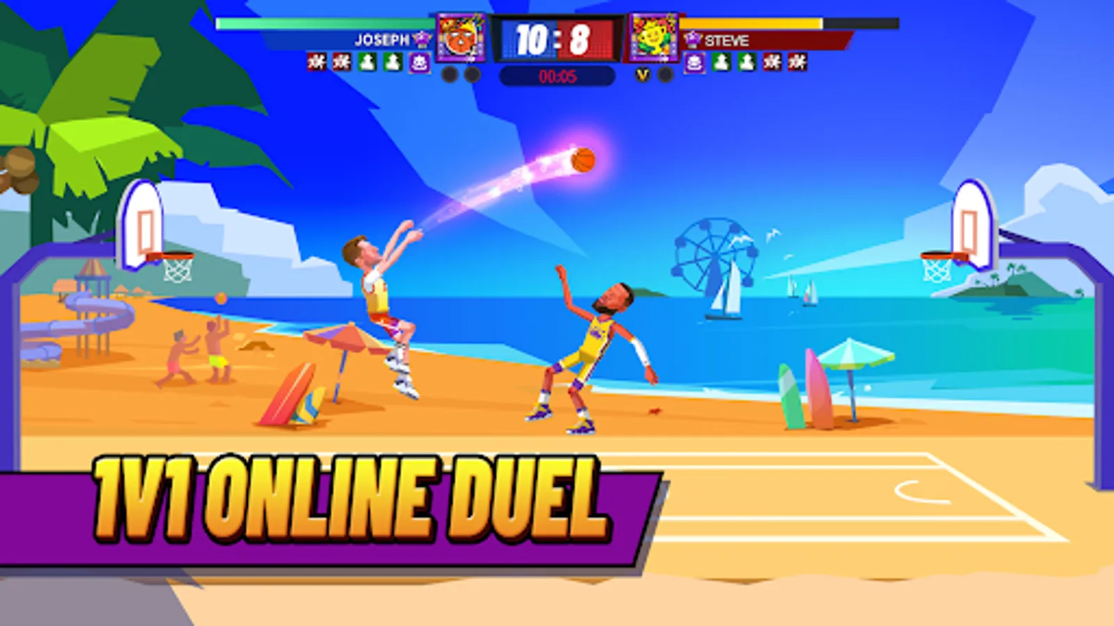 Basketball Duel 1V1 is a basketball-themed mobile game with multiple gameplay options. It offers a variety of modes such as 1v1 bullfighting, three-round competition, free shooting, three-point competition, free confrontation, and seasonal challenge.