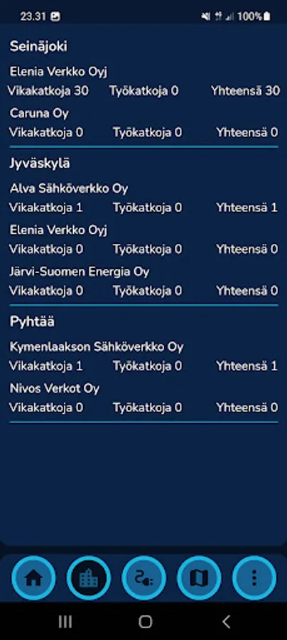 Sähkökatkot -kartalla Screenshots