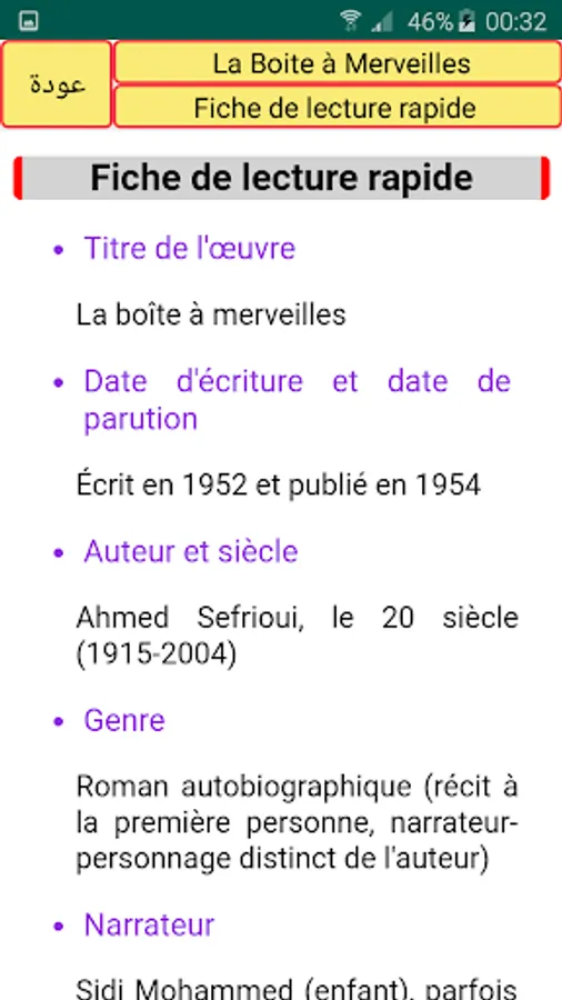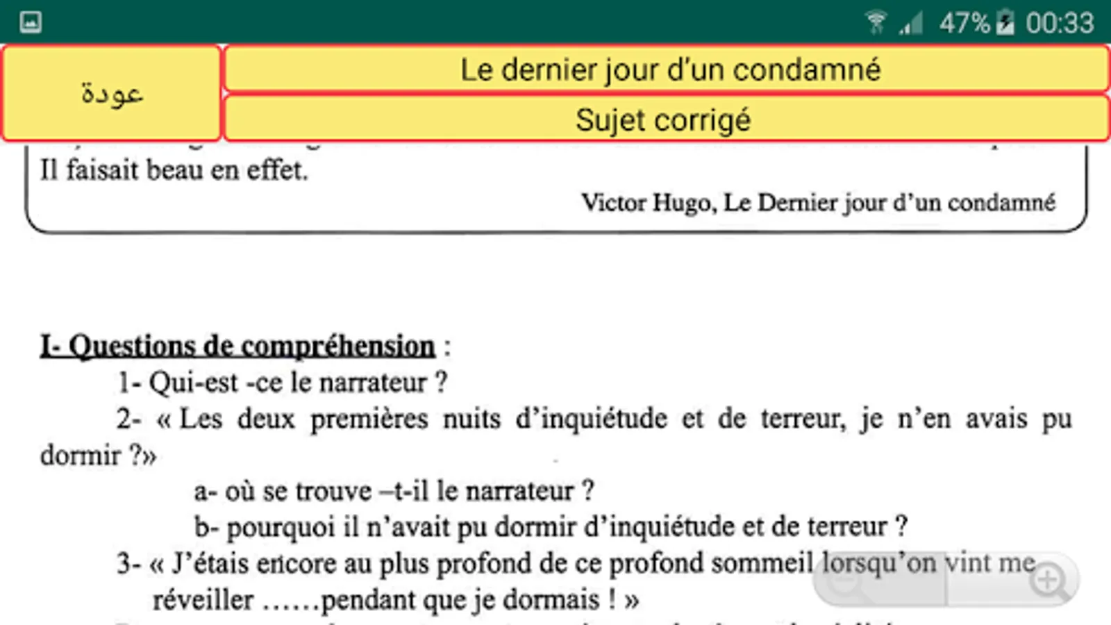 This application contains the French language lessons for the first year of the baccalaureate, summaries of all novels, previous regional examinations without internet.