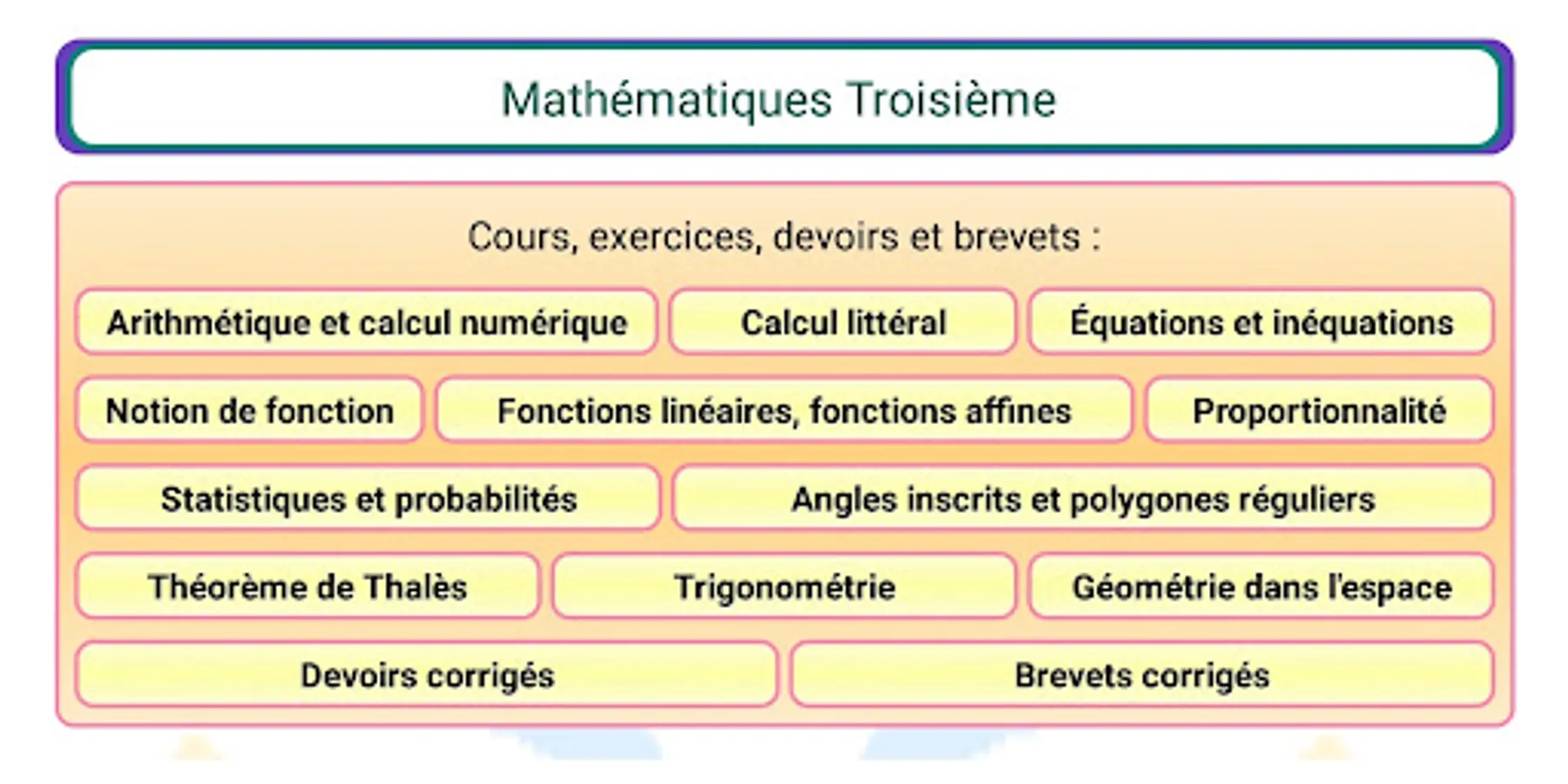 This application contains Mathematics lessons for third year students, summaries of all lessons, exercises and corrected homework without Internet.