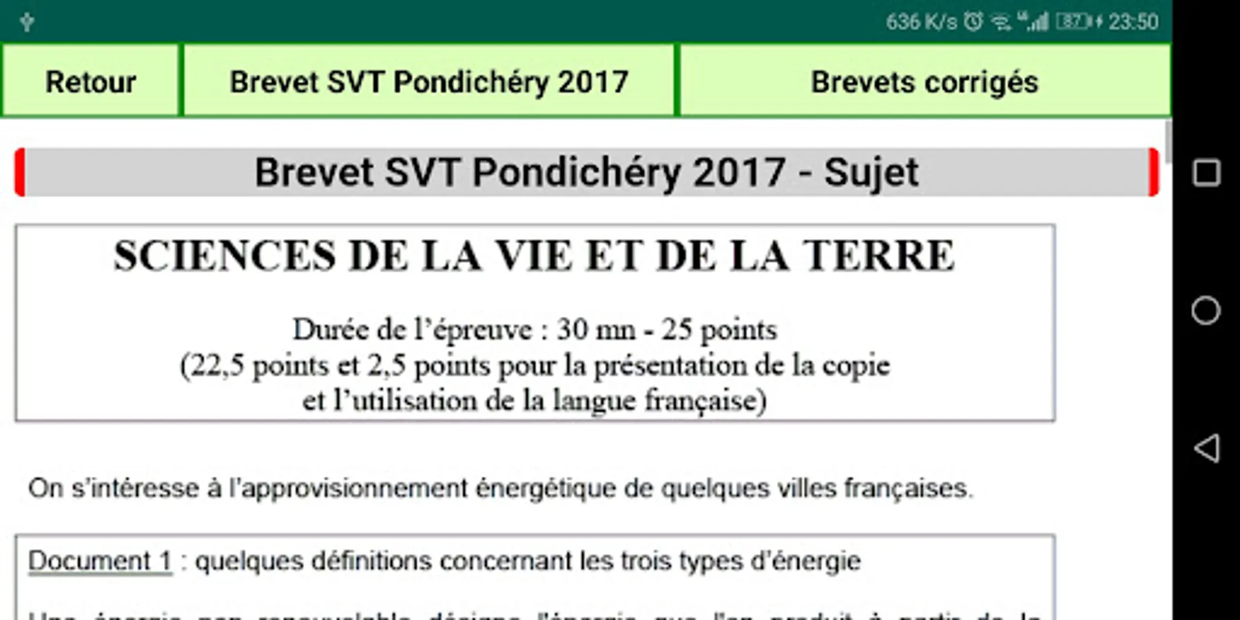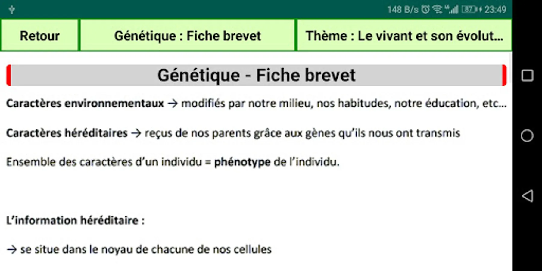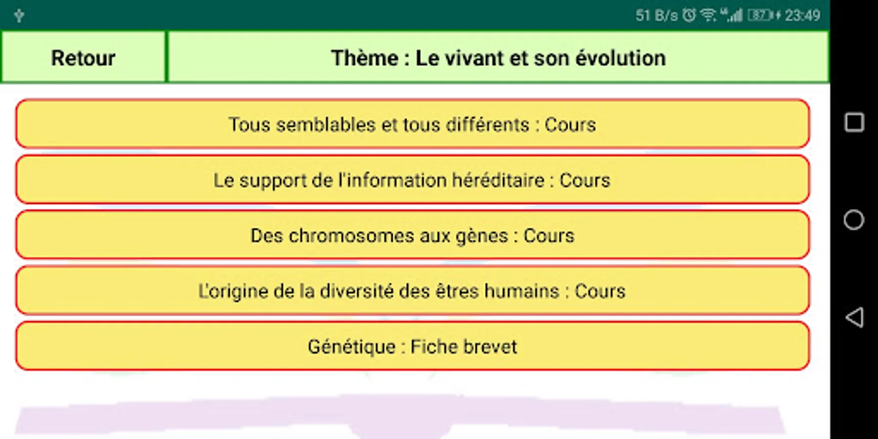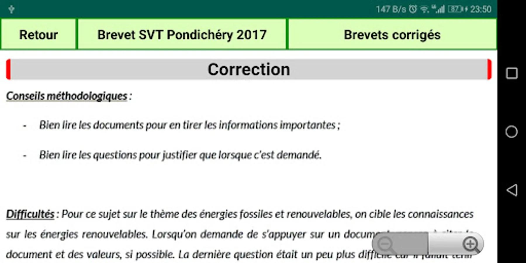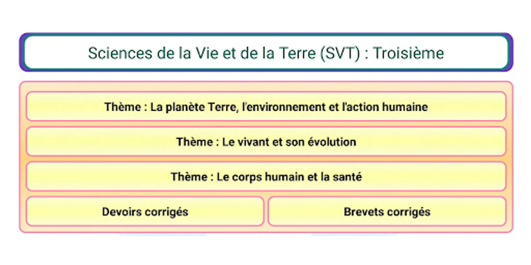 This application contains Life and Earth Sciences (SVT) courses for third year students, summaries of all lessons, exercises and corrected homework without Internet.