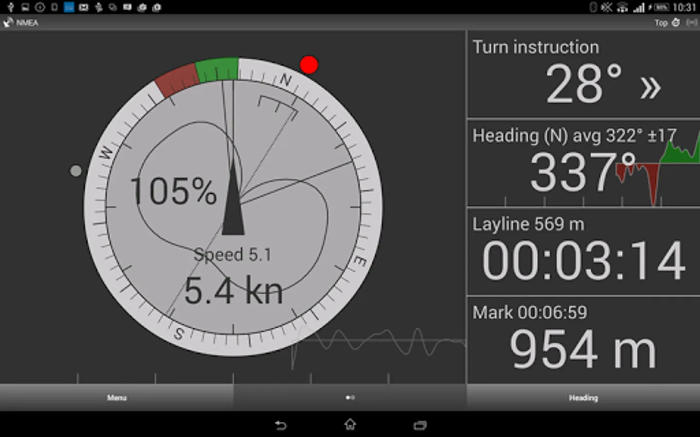 Every wind gust and lull affect the boat heading and is visualized in a “easy to read” shift bar on the top of compass rose and on the map.