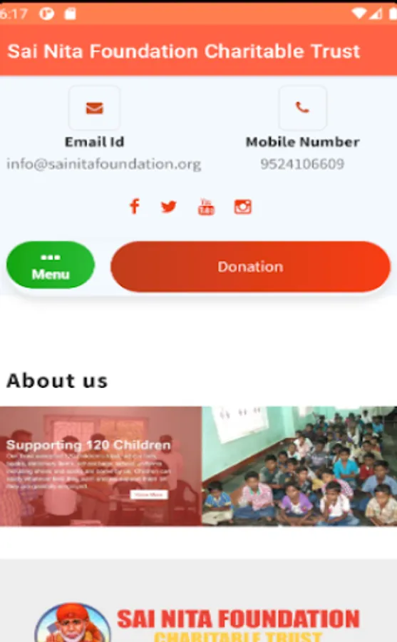Sai Nita Foundation Charitable Trust was formerly known as Sai Nita Foundation. SNFCT is a non-government, non-profitable welfare association formed by Shri Sai Baba Devotees under the guidance of R.Ganesh (Managing Trustee), A.M.Janarathanan (Trustee). It was incorporated in march 2017 under the Indian Trusts Act, 1882.