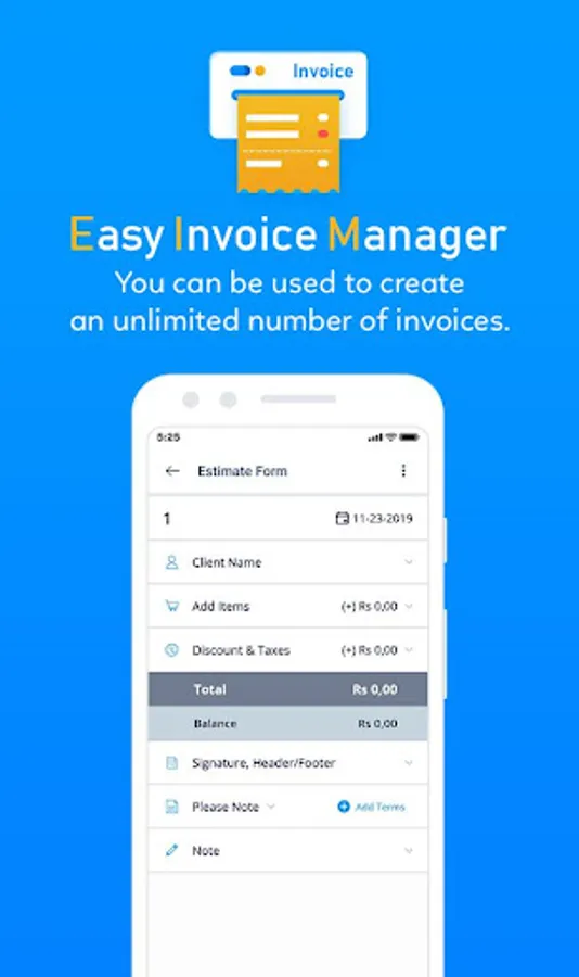 Invoice Manager with we can access and edit old invoices also. Features of Easy Invoice users can send the invoice to their customers using messaging applications. The format of Easy Invoice is completely editable which makes it easier and simple to use. With the help of easy Invoice, users can create or manage bill/purchase order or also manage tax according to their items or products.