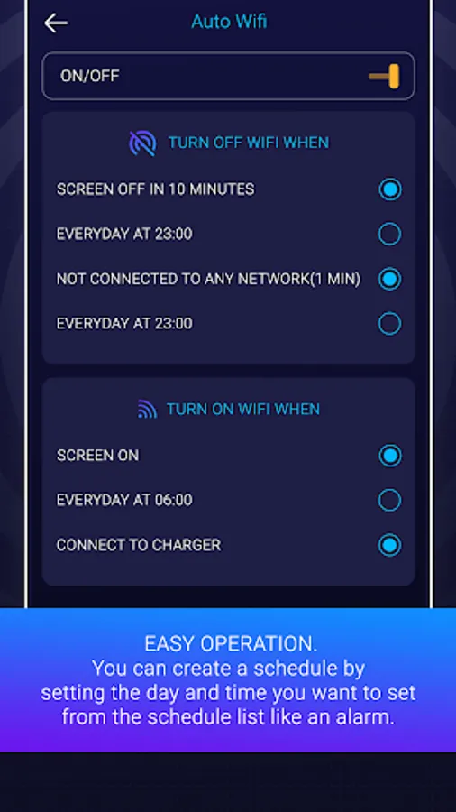 4. Auto turn on, turn off WIFI