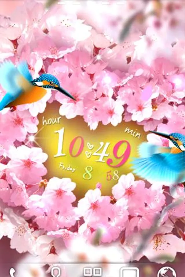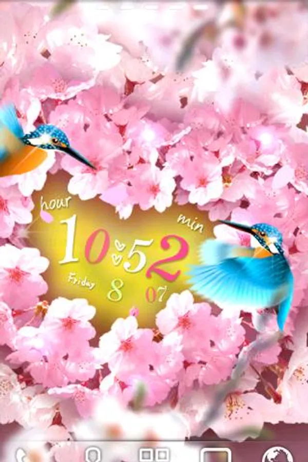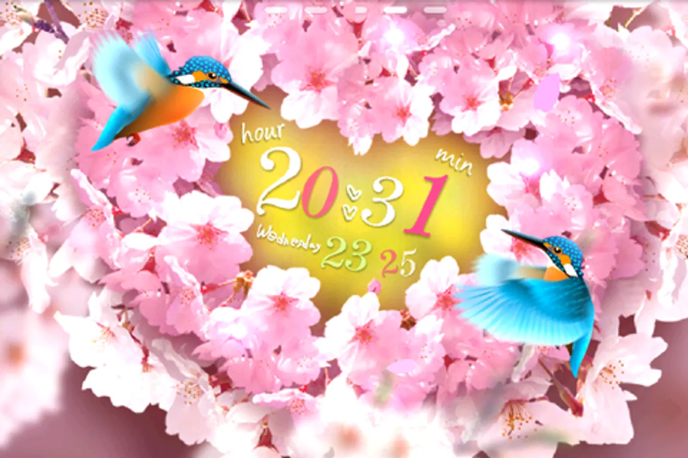 Cherry blossoms in full bloom, and pairs of kingfisher