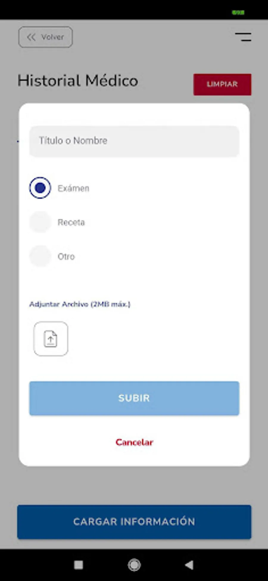 Possibility of uploading medical prescriptions, test results and any type of information, in order to generate a client's medical history.