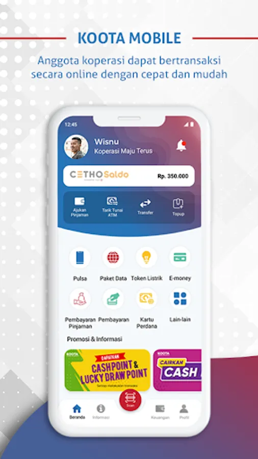 Koota is equipped with a mobile application that can provide convenience for cooperative members in conducting online transactions such as purchases, payments, transfers to fellow members as well as to banks to ATM cash withdrawals.