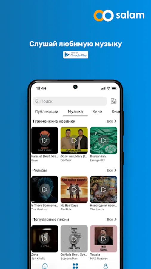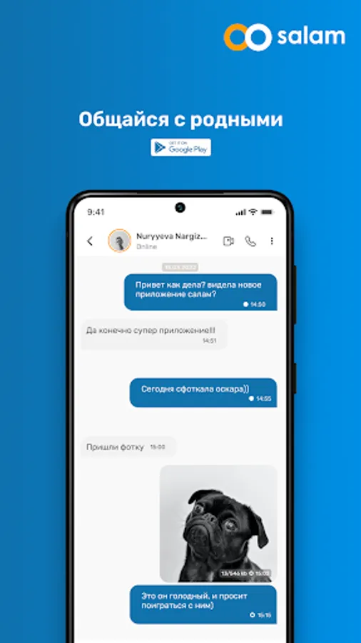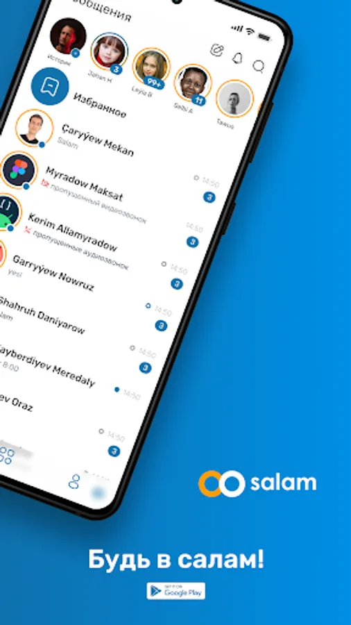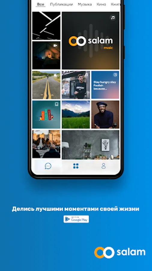 Salam is a new generation messenger. It combines all the possibilities for communication and entertainment. Here you can not only chat and call friends, but also watch movies, listen to music, upload your photos or videos and read books. For all this, separate applications are no longer needed - everything is available in Salam.