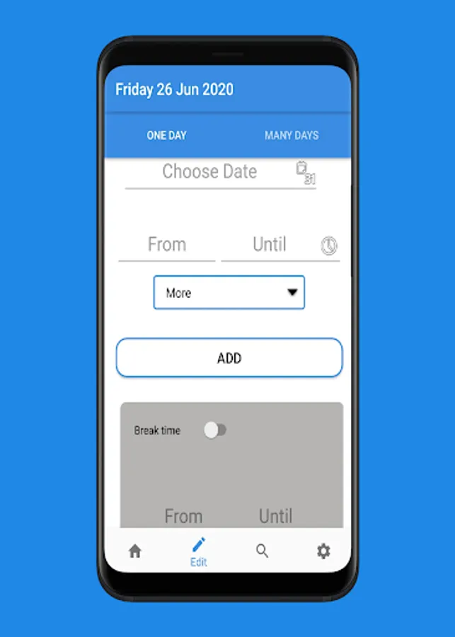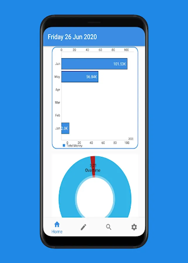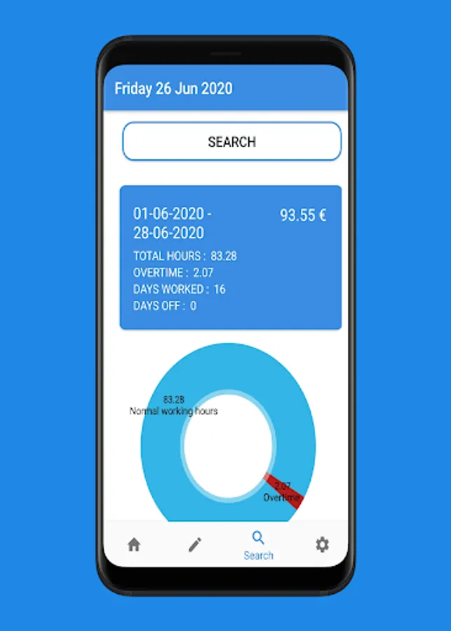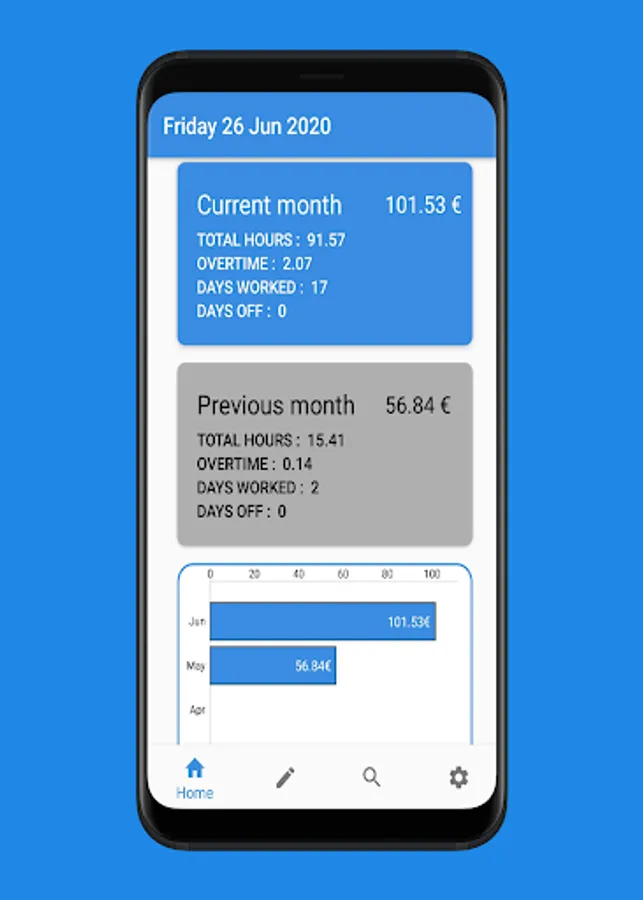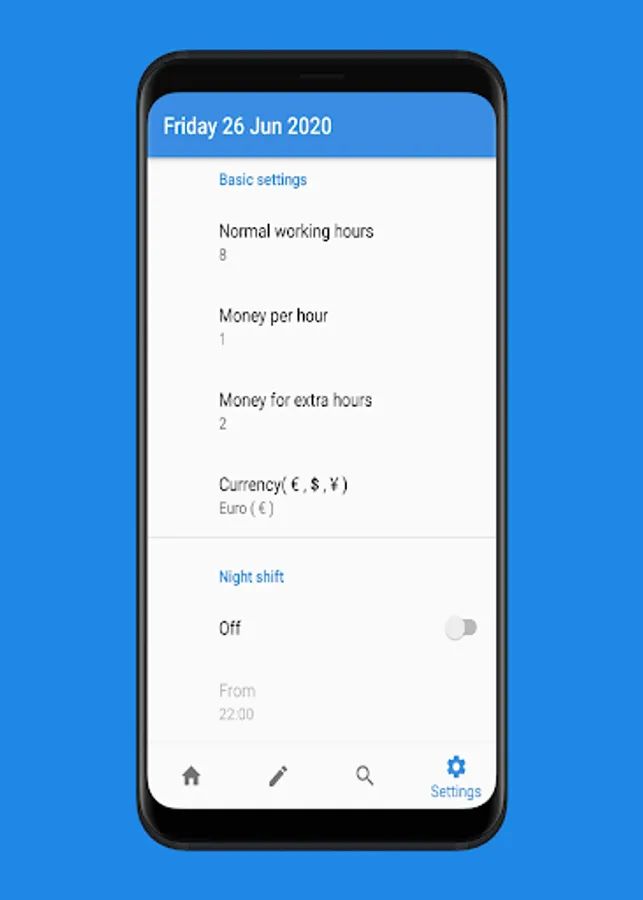 When first logged in the application, user must put in the normal working hours,the money per hour worked and the money per extra hour.