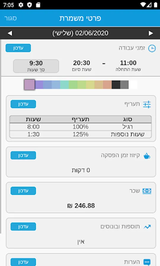 ★ Option to set and adjust the exact rates at which the calculated salary (overtime percentage, the percentage for working on Saturday / holiday, etc.).