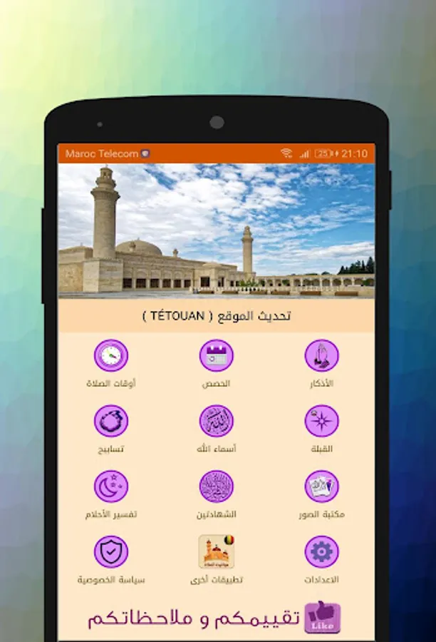 The program of prayer times, adhan, and qiblah gives all the five times of prayers in all cities of the Emirates, Iraq, Tunisia, Qatar, Kuwait, Morocco, Saudi Arabia and the cities of Oman and Bahrain .. by specifying your location directly in order to show you the times of the call to prayer and prayer in your city, and it also gives you the direction of the direction accurately High . The application also uses different methods of calculating Asr prayer according to many countries and countries around the world, which gives it more accuracy in determining prayer times, the qiblah and the call to prayer.