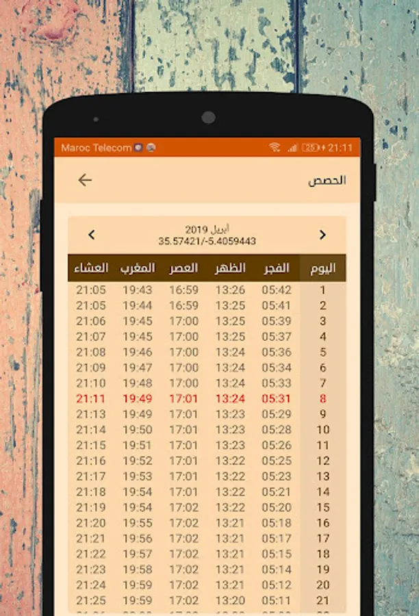 The prayer times program calculates the dates of prayer with good accuracy, God willing, and is characterized by the possibility of obtaining the times in the manner of the Moroccan Ministry of Awqaf and Islamic Affairs, a source of deadlock for the times of prayer in Morocco in addition to other ways: