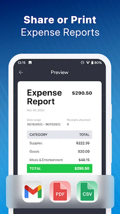 Scan receipts and create expense reports to track your business and personal accounting. Our receipt scanner and expense manager app uses OCR technology for smart scanning of receipts to quicken the speed and accuracy of your financial records, allowing you to spend less time keeping your books and more time in other areas of your business. Receipt Scanner will be one of your best solutions for tracking all of your business expenses and managing your business.