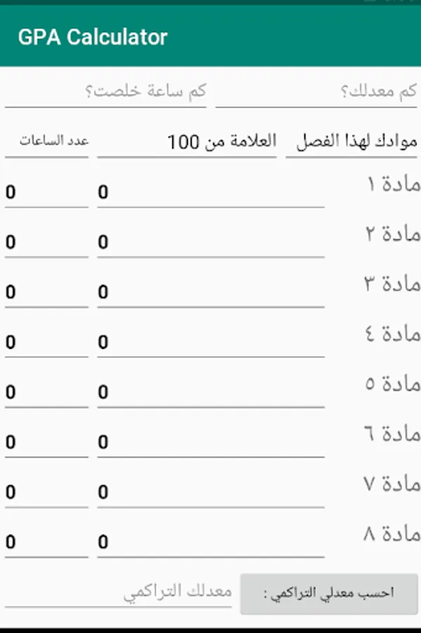 Application - Demo - To calculate the average of 100, you can calculate through this application your quarterly average, cumulative rate, and also the application can calculate the rate of the student in the current season to improve the cumulative rate.