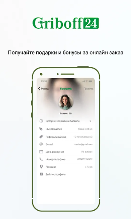 With the mobile application "Griboff24" you can: