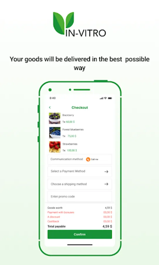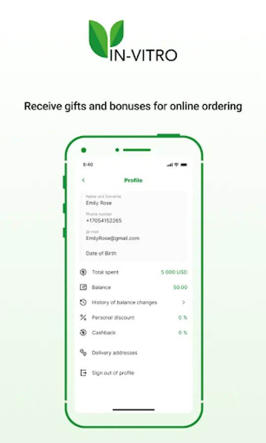 With the "IN VITRO" mobile application, you will be able to: