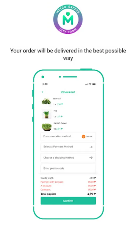 The METRO GREENS app allows you to quickly place an order directly from our farms.