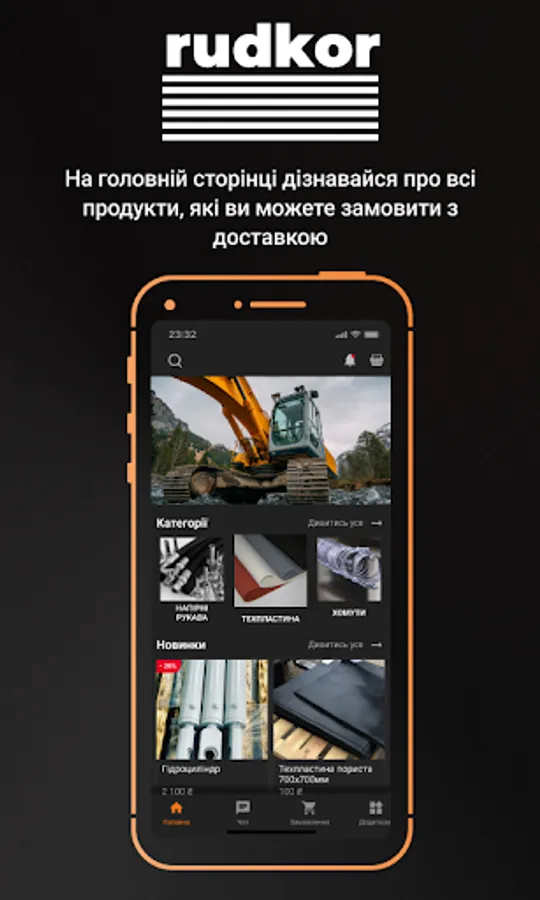 With the Rudkor app you will always be up to date with news and promotions, and our convenient catalog will help you quickly decide on your purchase.