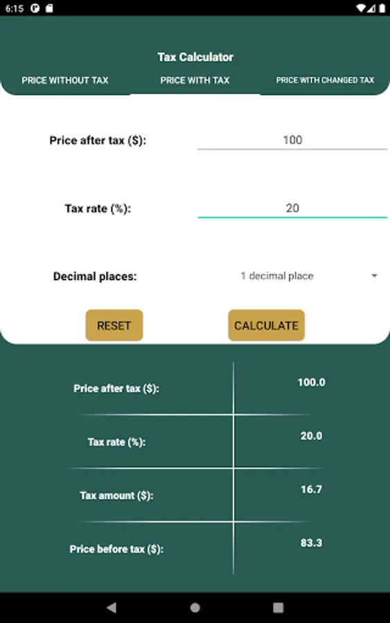 Tax Calculator is an easy-to-use application that helps you calculate taxes. Enter the price and tax rate, and the app will give you a full report.